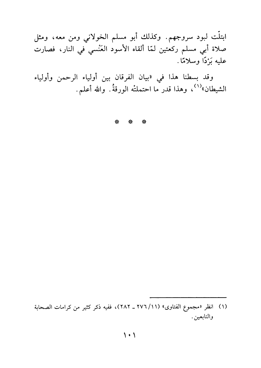 (¬١) انظر "مجموع الفتاوى" (١١/ ٢٧٦ - ٢٨٢)، ففيه ذكر كثير من كرامات الصحابة والتابعين.