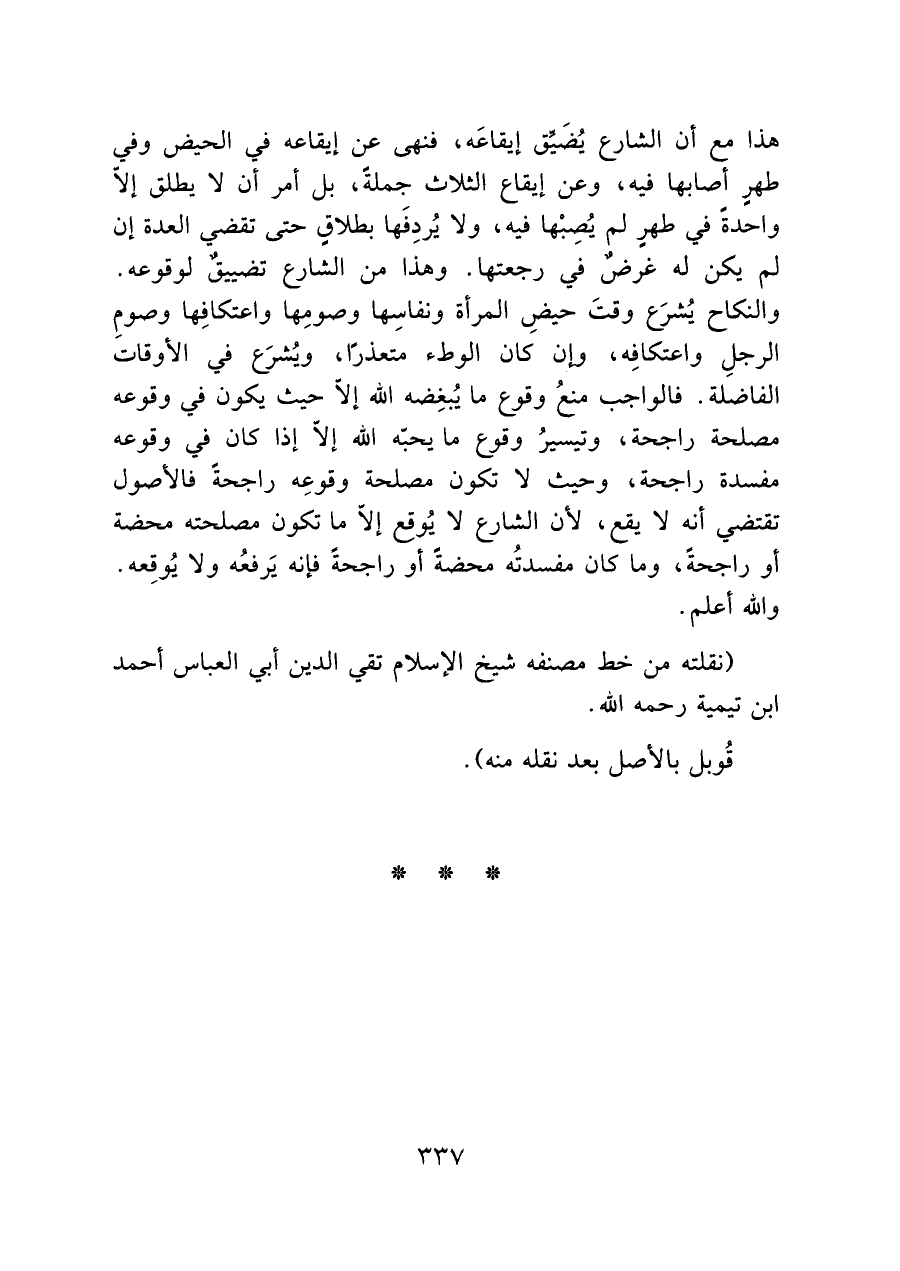 (نقلته من خط مصنفه شيخ الإسلام تقي الدين أبي العباس أحمد ابن تيمية رحمه الله.