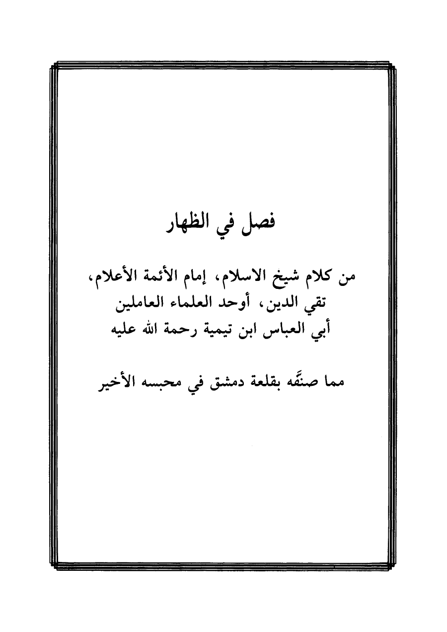 من كلام شيخ الإسلام، إمام الأئمة الأعلام، تقي الدين، أوحد العلماء العاملين أبي العباس ابن تيمية رحمة الله عليه