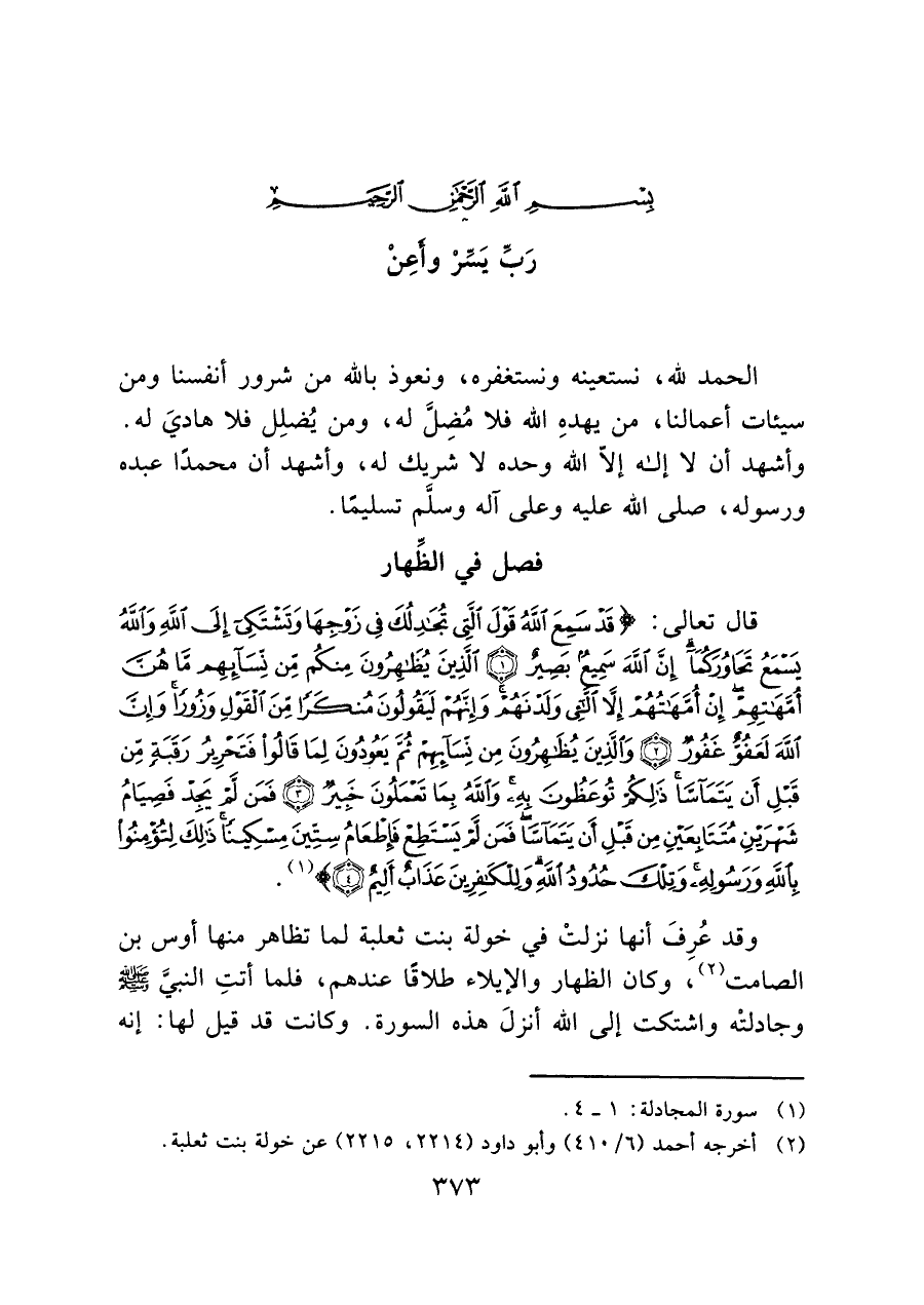 (¬١) سورة المجادلة: ١ - ٤.
