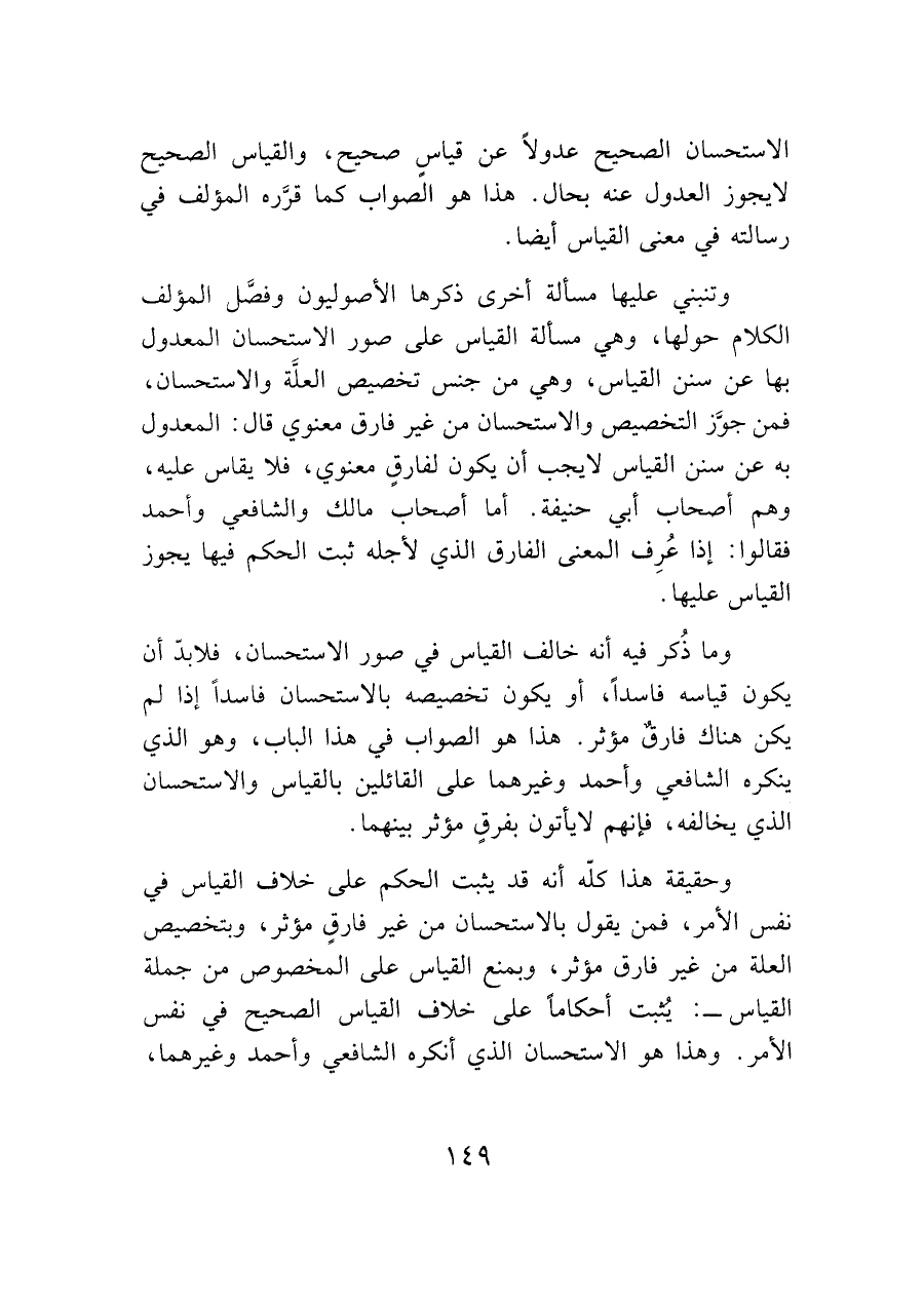 الاستحسان الصحيح عدولاً عن قياس صحيح، والقياس الصحيح لا يجوز العدول عنه بحال. هذا هو الصواب كما قرَّره المؤلف في رسالته في معنى القياس أيضًا.
