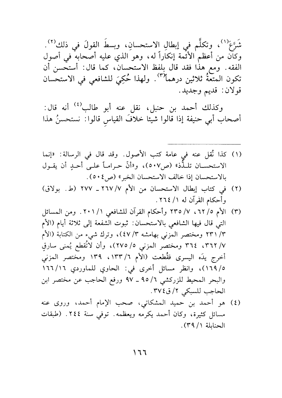 (¬٣) الأم ٥/ ٦٢، ٧/ ٢٣٥ وأحكام القرآن للشافعي ١/ ٢٠١. ومن المسائل التي قال فيها الشافعي بالاستحسان: ثبوت الشفعة إلى ثلاثة أيام (الأم ٣/ ٢٣١ ومختصر المزني بهامشه ٣/ ٤٧)، وترك شيء من الكتابة (الأم ٧/ ٣٦٢، ٣٦٤ ومختصر المزني ٥/ ٢٧٥)، وأن لا تُقطع يُمنى سارقٍ أخرج يدَه اليسرى فقُطعت (الأم ٦/ ١٣٣، ١٣٩ ومختصر المزني ٥/ ١٦٩)، وانظر مسائل أخرى في: الحاوي للماوردي ١٦/ ١٦٦ والبحر المحيط للزركشي ٦/ ٩٥ - ٩٧ ورفع الحاجب عن مختصر ابن الحاجب للسبكي ٢/ق ٣٧٤.