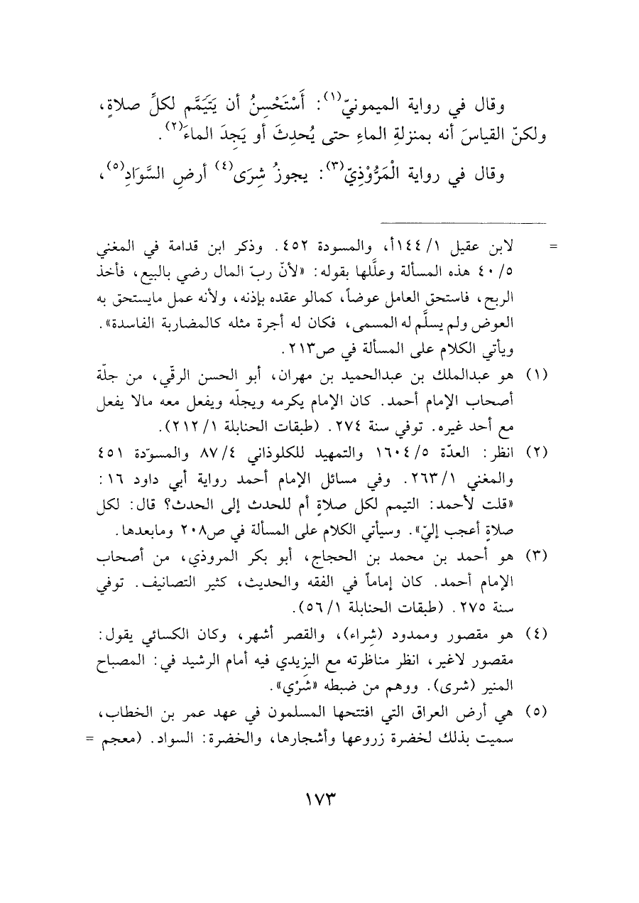 (¬٣) هو أحمد بن محمد بن الحجاج، أبو بكر المروذيَ، من أصحاب الإمام أحمد. كان إماماً في الفقه والحديث، كثير التصانيف. توفي سنة ٢٧٥. (طبقات الحنابلة ١/ ٥٦).