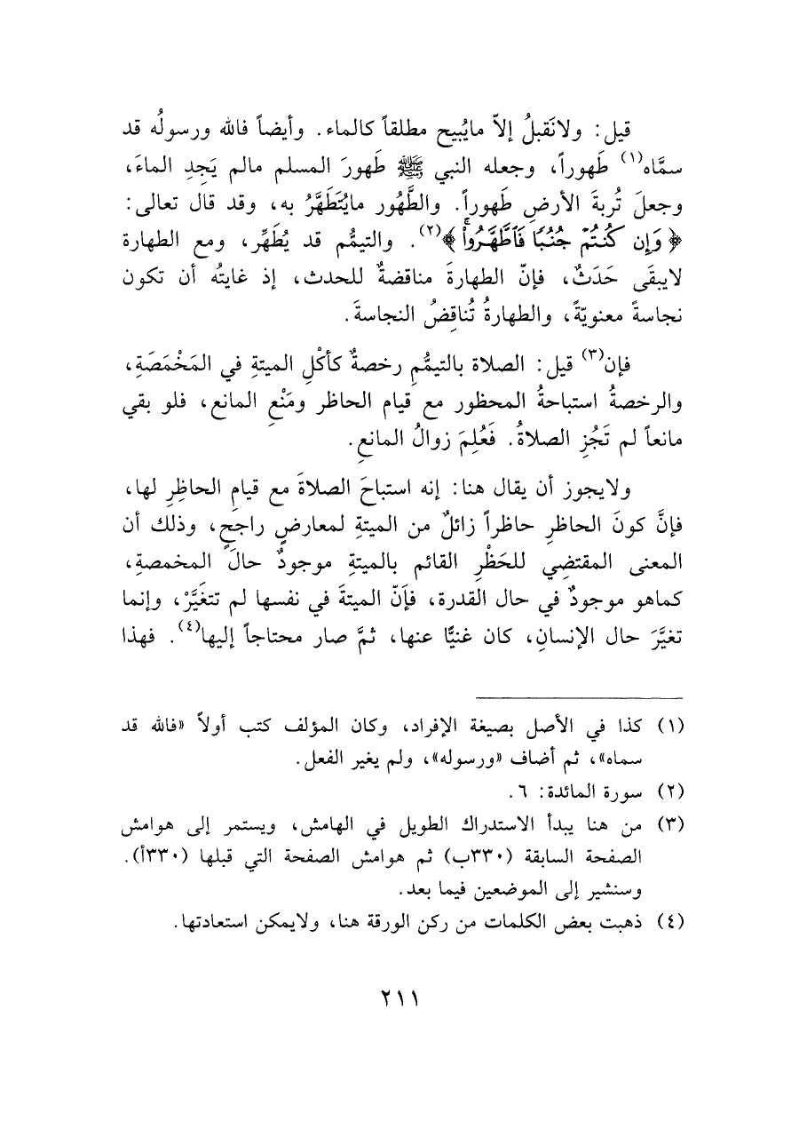 (¬٣) من هنا يبدأ الاستدراك الطويل في الهامش، ويستمر إلى هوامش الصفحة السابقة (٣٣٠ ب) ثم هوامش الصفحة التي قبلها (٣٣٠ أ). وسنشير إلى الموضعين فيما بعد.