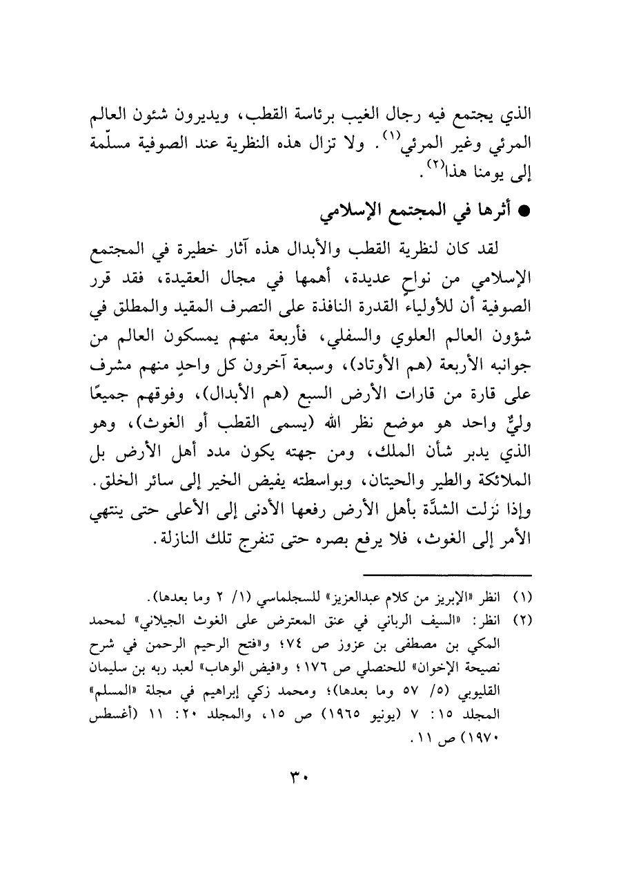 (¬٢) انظر: "السيف الرباني في عنق المعترض على الغوث الجيلاني" لمحمد المكي بن مصطفى بن عزوز ص ٧٤؛ و"فتح الرحيم الرحمن في شرح نصيحة الإخوان" للحنصلي ص ١٧٦؛ و"فيض الوهاب" لعبد ربه بن سليمان القليوبي (٥/ ٥٧ وما بعدها)؛ ومحمد زكي إبراهيم في مجلة "المسلم" المجلد ١٥: ٧ (يونيو ١٩٦٥) ص ١٥، والمجلد ٢٠/ ١١ (أغسطس ١٩٧٠) ص ١١.