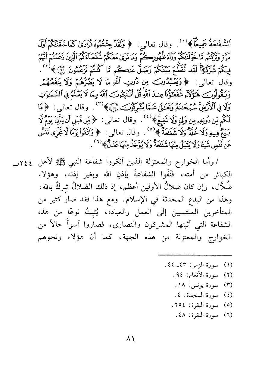 (¬١) سورة الزمر: ٤٣ - ٤٤.