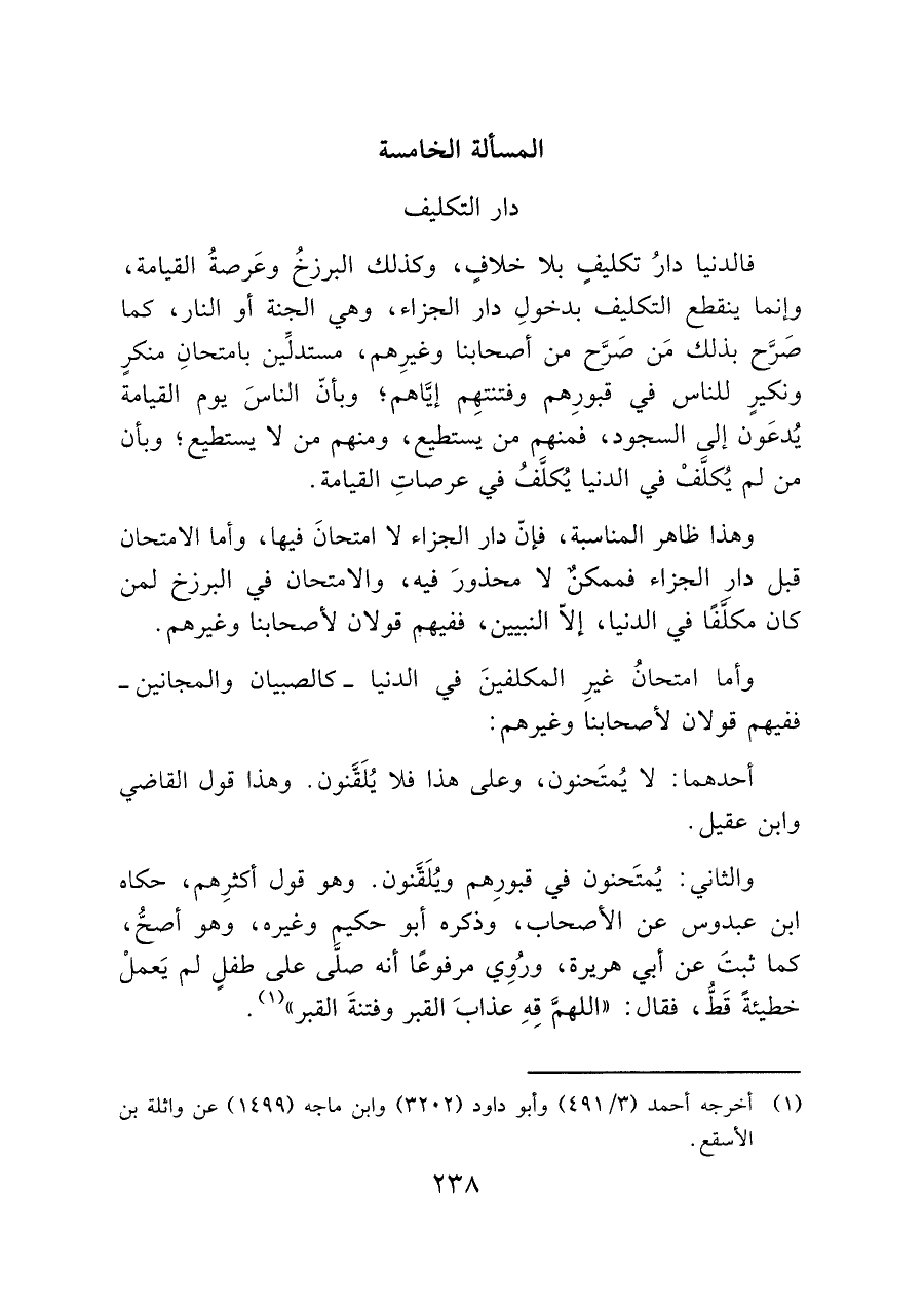 المسألة الخامسة دار التكليف