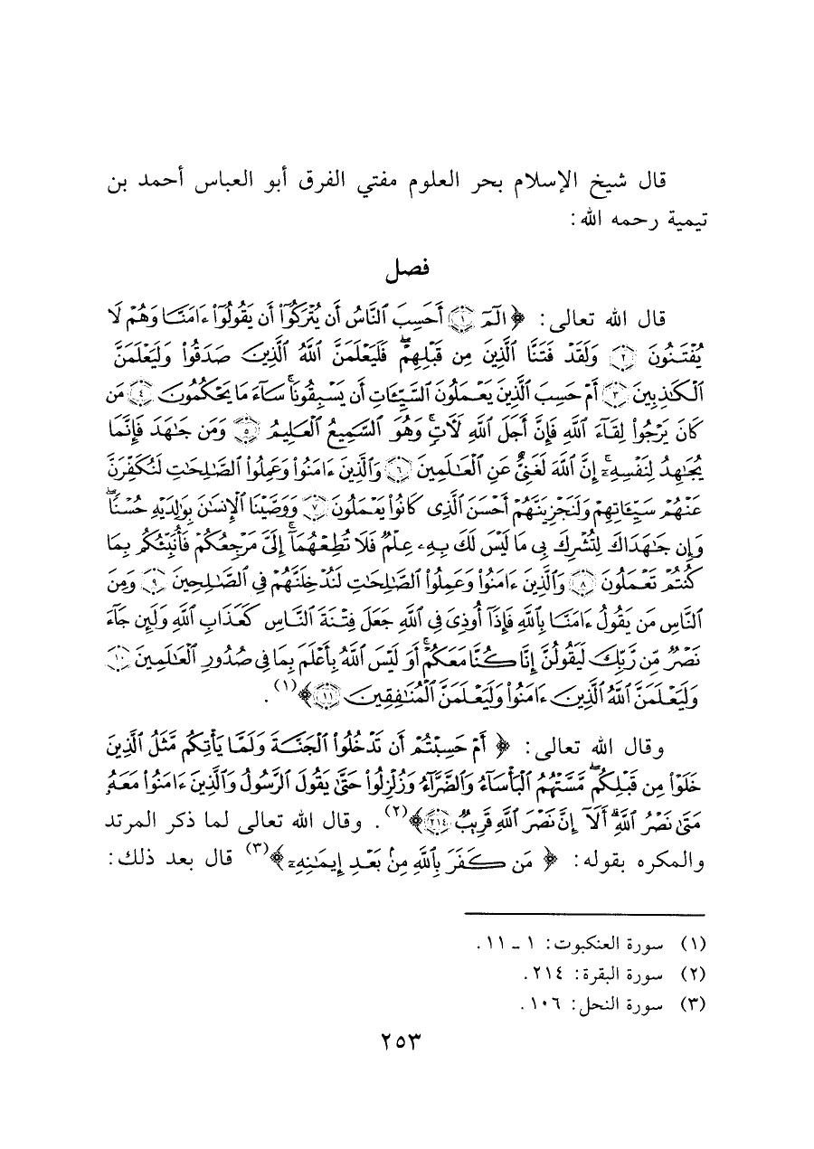 قال شيخ الإسلام بحر العلوم مفتي الفرق أبو العباس أحمد بن تيمية رحمه الله: