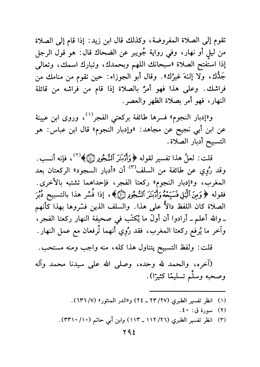 قلت: لعلَّ هذا تفسير لقوله (وَأَدْبَارَ السُّجُودِ (٤٠)) (¬٢)، فإنه أنسب.