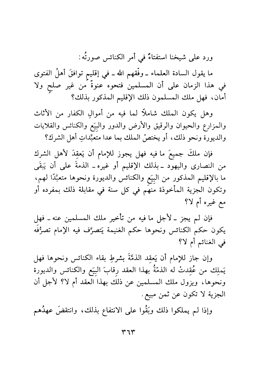 ورد على شيخنا استفتاءٌ في أمر الكنائس صورتُه:
