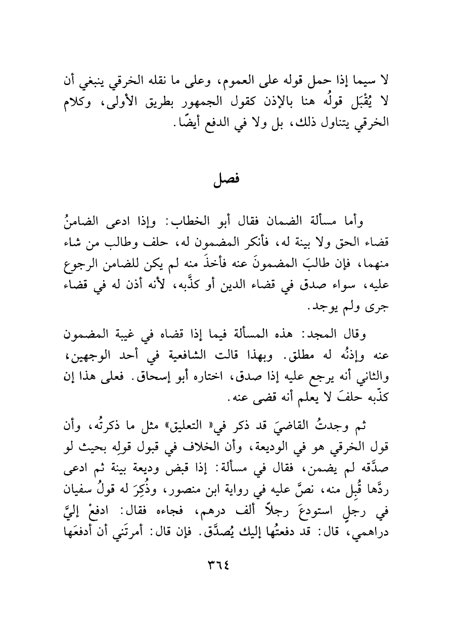 ثم وجدتُ القاضيَ قد ذكر في "التعليق" مثل ما ذكرتُه، وأن قول الخرقي هو في الوديعة، وأن الخلاف في قبول قوله بحيث لو صدّقه لم يضمن، فقال في مسألة: إذا قبض وديعة بينة ثم ادعى ردّها قُبِل منه، نصَّ عليه في رواية ابن منصور، وذُكِرَ له قولُ سفيان في رجل استودعَ رجلاً ألف درهم، فجاءه فقال: ادفعْ إليَّ دراهمي، قال: قد دفعتُها إليك يُصدَّق. فإن قال: أمرتَني أن أدفعَها