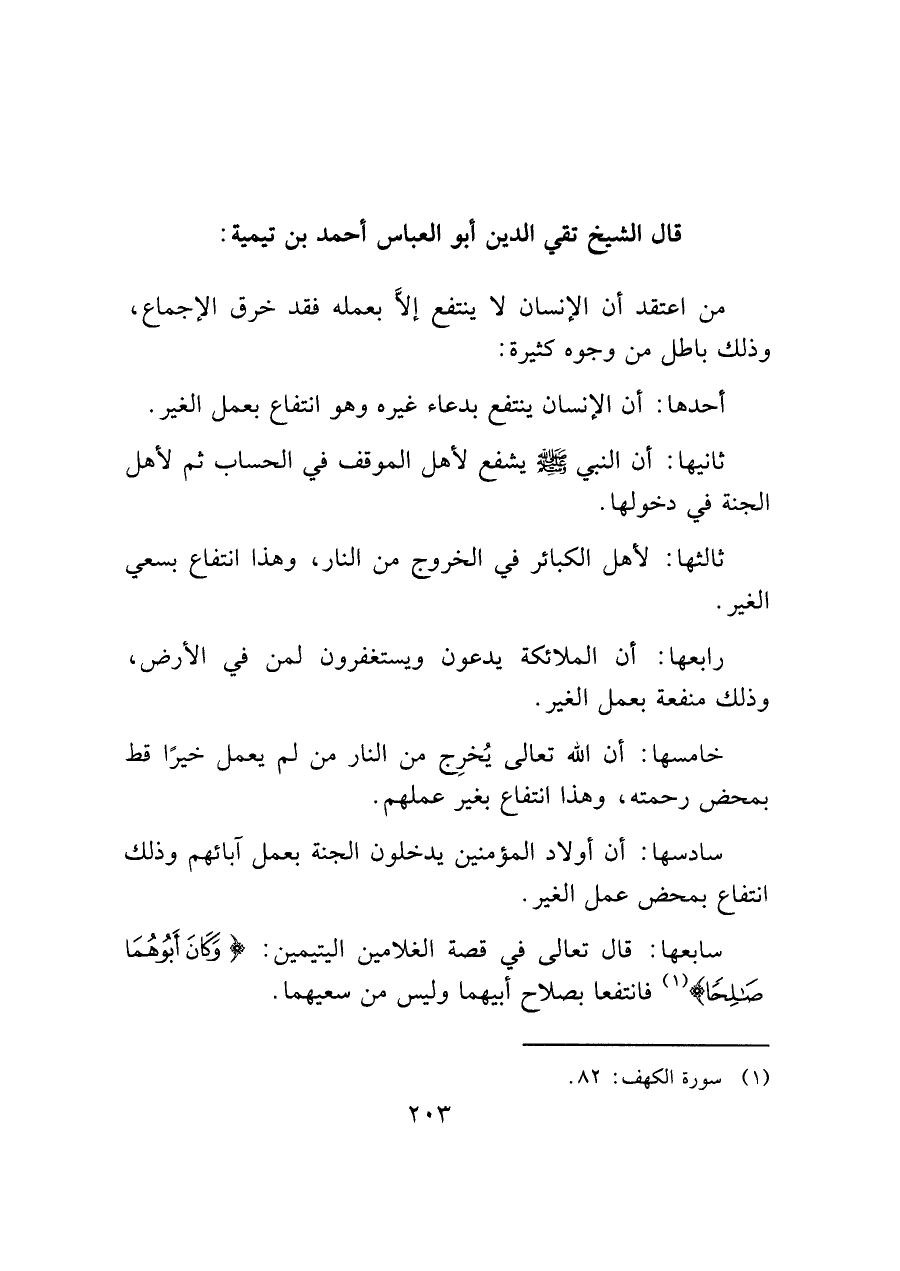 من اعتقد أن الإنسان لا ينتفع إلَاّ بعمله فقد خرق الإجماع، وذلك باطل من وجوه كثيرة: