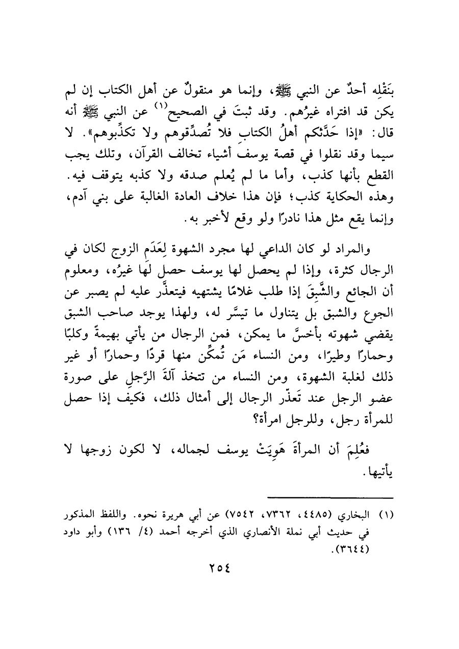 فعُلِمَ أن المرأةَ هَوِيَتْ يوسف لجماله، لا لكون زوجها لا يأتيها.