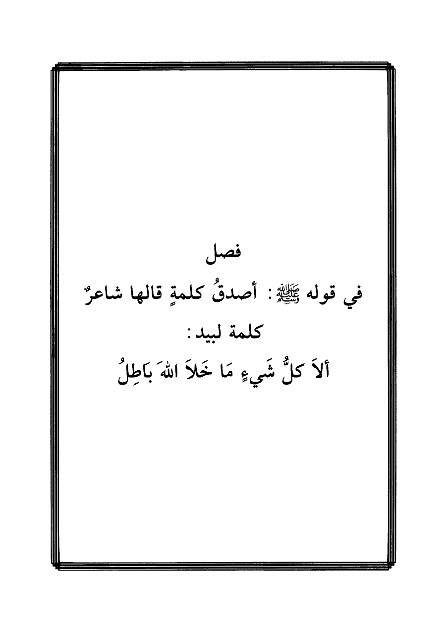فصل في قوله - صَلَّى اللَّهُ عَلَيْهِ وَسَلَّمَ -: أصدقُ كلمةٍ قالها شاعر كلمة لبيد: