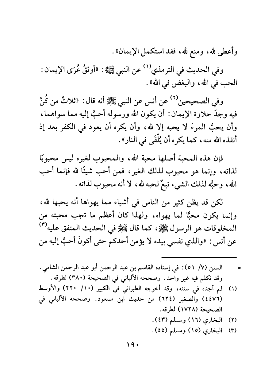 وفي الحديث في الترمذي (¬١) عن النبي - صَلَّى اللَّهُ عَلَيْهِ وَسَلَّمَ -: "أوثقُ عُرَى الإيمان: الحب في الله، والبغض في الله ".
