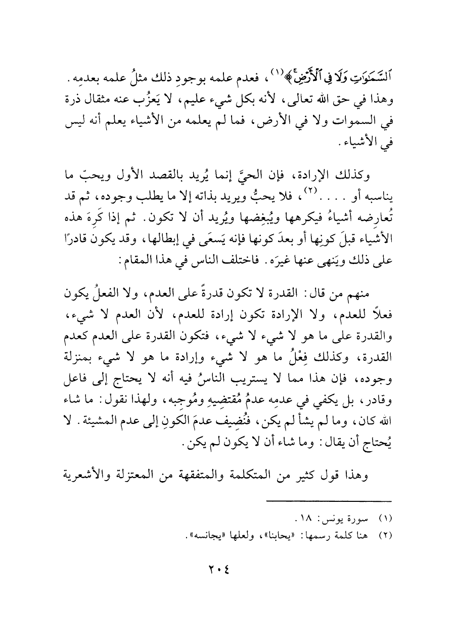 منهم من قال: القدرة لا تكون قدرةً على العدم، ولا الفعلُ يكون فعلاً للعدم، ولا الإرادة تكون إرادة للعدم، لأن العدم لا شيء، والقدرة على ما هو لا شيء لا شيء، فتكون القدرة على العدم كعدم القدرة، وكذلك فِعْلُ ما هو لا شيء وإرادة ما هو لا شيء بمنزلة وجوده، فإن هذا مما لا يستريب الناسُ فيه أنه لا يحتاج إلى فاعل وقادر، بل يكفي في عدمِه عدمُ مُقتضِيهِ ومُوجبه، ولهذا نقول: ما شاء الله كان، وما لم يشأ لم يكن، فنُضِيف عدمَ الكَونِ إلى عدم المشيئة. لا يُحتاج أن يقال: وما شاء أن لا يكون لم يكن.