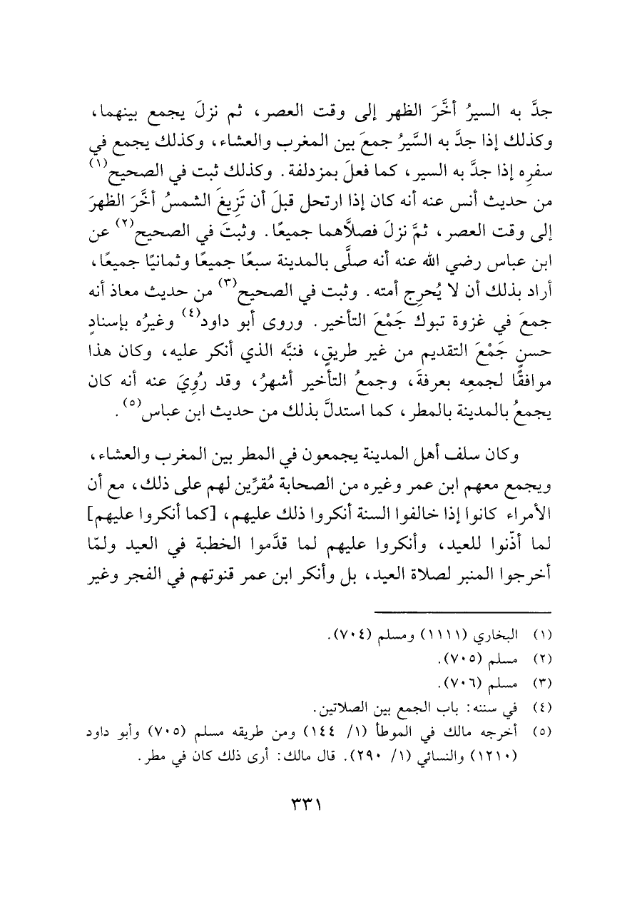 (¬٥) أخرجه مالك في الموطأ (١/ ١٤٤) ومن طريقه مسلم (٧٠٥) وأبو داود (١٢١٠) والنسائي (١/ ٢٩٠). قال مالك: أرى ذلك كان في مطر.