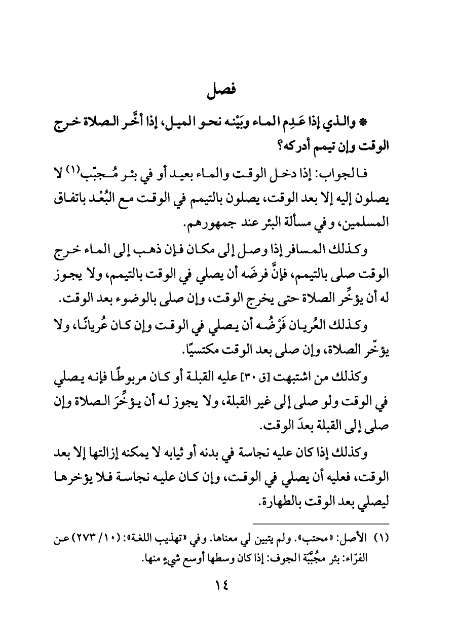 فالجواب: إذا دخل الوقت والماء بعيد أو في بئر مُجبّب (¬١) لا يصلون إليه إلا بعد الوقت، يصلون بالتيمم في الوقت مع البُعْد باتفاق المسلمين، وفي مسألة البئر عند جمهورهم.