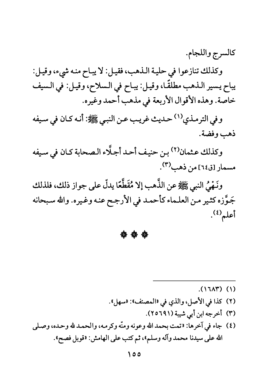 وكذلك عثمان (¬٢) بن حنيف أحد أجلَّاء الصحابة كان في سيفه مسمار [ق ٦٤] من ذهب (¬٣).