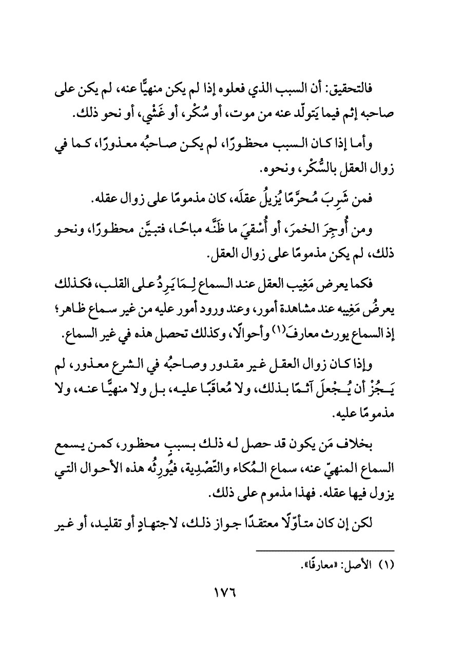 وإذا كان زوال العقل غير مقدور وصاحبُه في الشرع معذور، لم يَجُزْ أن يُجْعلَ آثمًا بذلك، ولا مُعاقَبًا عليه، بل ولا منهيًّا عنه، ولا مذمومًا عليه.