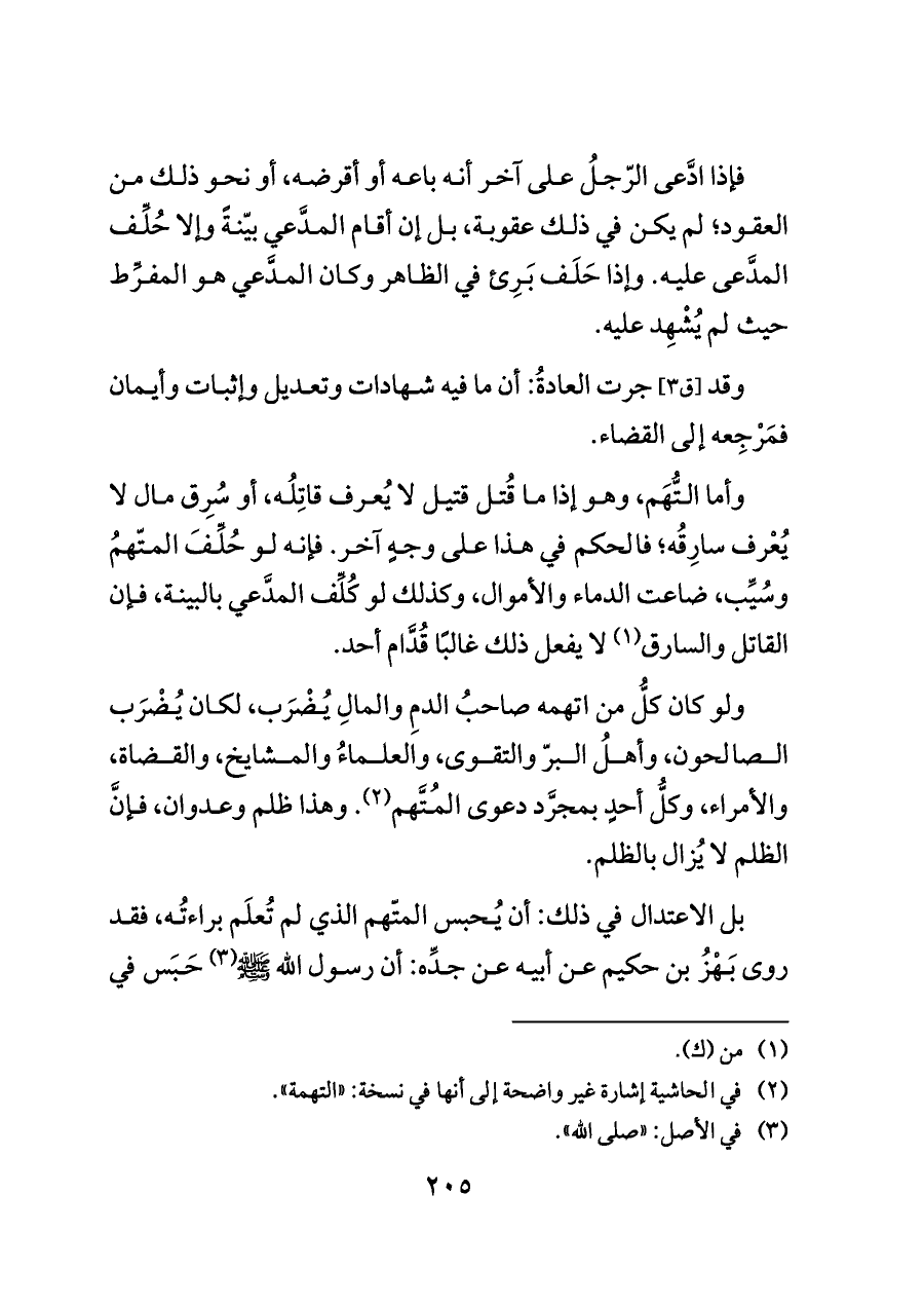 بل الاعتدال في ذلك: أن يُحبس المتّهم الذي لم تُعلَم براءتُه، فقد روى بَهْزُ بن حكيم عن أبيه عن جدِّه: أن رسول الله - صلى الله عليه وسلم - (¬٣) حَبَس في