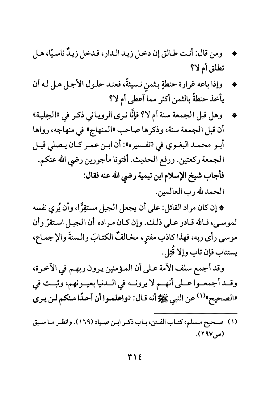فأجاب شيخ الإسلام ابن تيمية رضي الله عنه فقال: