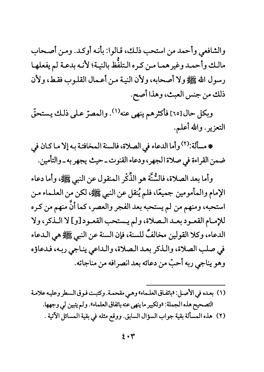 (¬٢) هذه المسألة بقية جواب السؤال السابق. ووقع مثله في بقية المسائل الآتية.