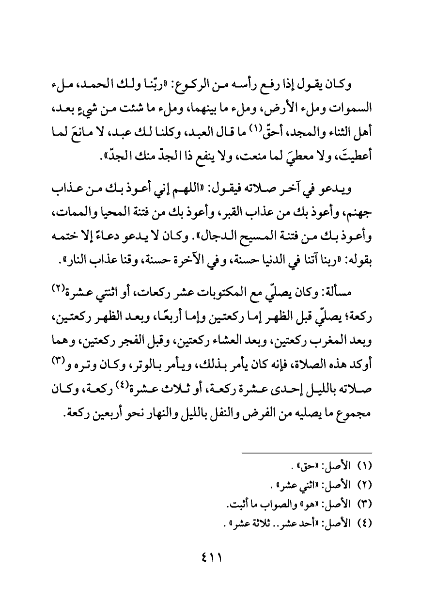 وكان يقول إذا رفع رأسه من الركوع: "ربّنا ولك الحمد، ملء السموات وملء الأرض، وملء ما بينهما، وملء ما شئت من شيءٍ بعد، أهل الثناء والمجد، أحقّ (¬١) ما قال العبد، وكلنا لك عبد، لا مانعَ لما أعطيتَ، ولا معطيَ لما منعت، ولا ينفع ذا الجدّ منك الجدّ".