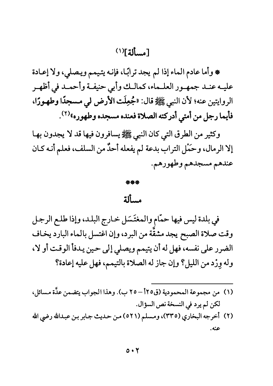 (¬٢) أخرجه البخاري (٣٣٥)، ومسلم (٥٢١) من حديث جابر بن عبدالله رضي الله عنه.