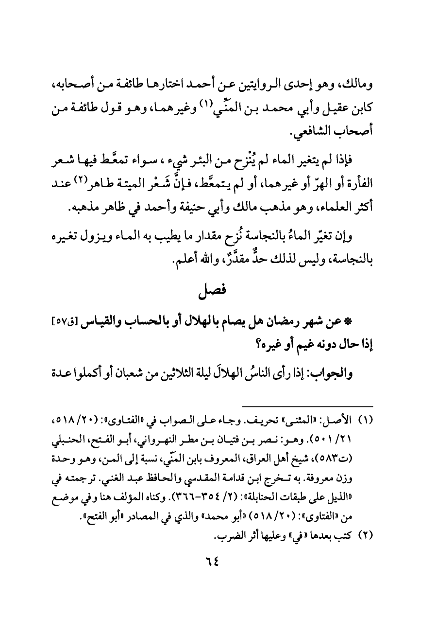 (¬١) الأصل: «المثنى» تحريف. وجاء على الصواب في «الفتاوى»: (٢٠/ ٥١٨، ٢١/ ٥٠١). وهو: نصر بن فتيان بن مطر النهرواني، أبو الفتح، الحنبلي (ت ٥٨٣)، شيخ أهل العراق، المعروف بابن المَنّي، نسبة إلى المن، وهو وحدة وزن معروفة. به تخرج ابن قدامة المقدسي والحافظ عبد الغني. ترجمته في «الذيل على طبقات الحنابلة»: (٢/ ٣٥٤ - ٣٦٦). وكناه المؤلف هنا وفي موضع من «الفتاوى»: (٢٠/ ٥١٨) «أبو محمد» والذي في المصادر «أبو الفتح».
