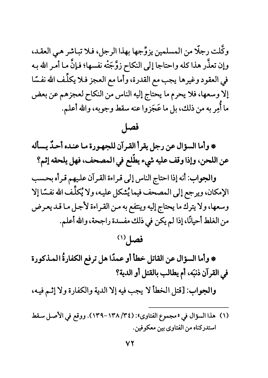 (¬١) هذا السؤال في «مجموع الفتاوى»: (٣٤/ ١٣٨ - ١٣٩). ووقع في الأصل سقط استدركناه من الفتاوى بين معكوفين.