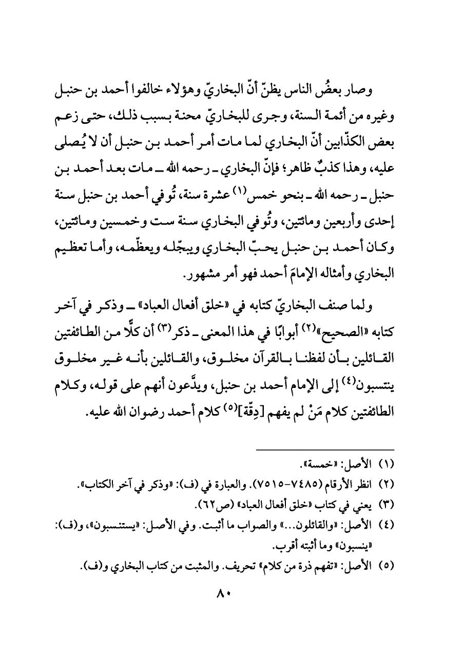 (¬٣) يعني في كتاب «خلق أفعال العباد» (ص ٦٢).