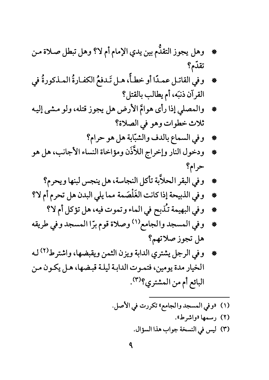 (¬٣) ليس في النسخة جواب هذا السؤال.