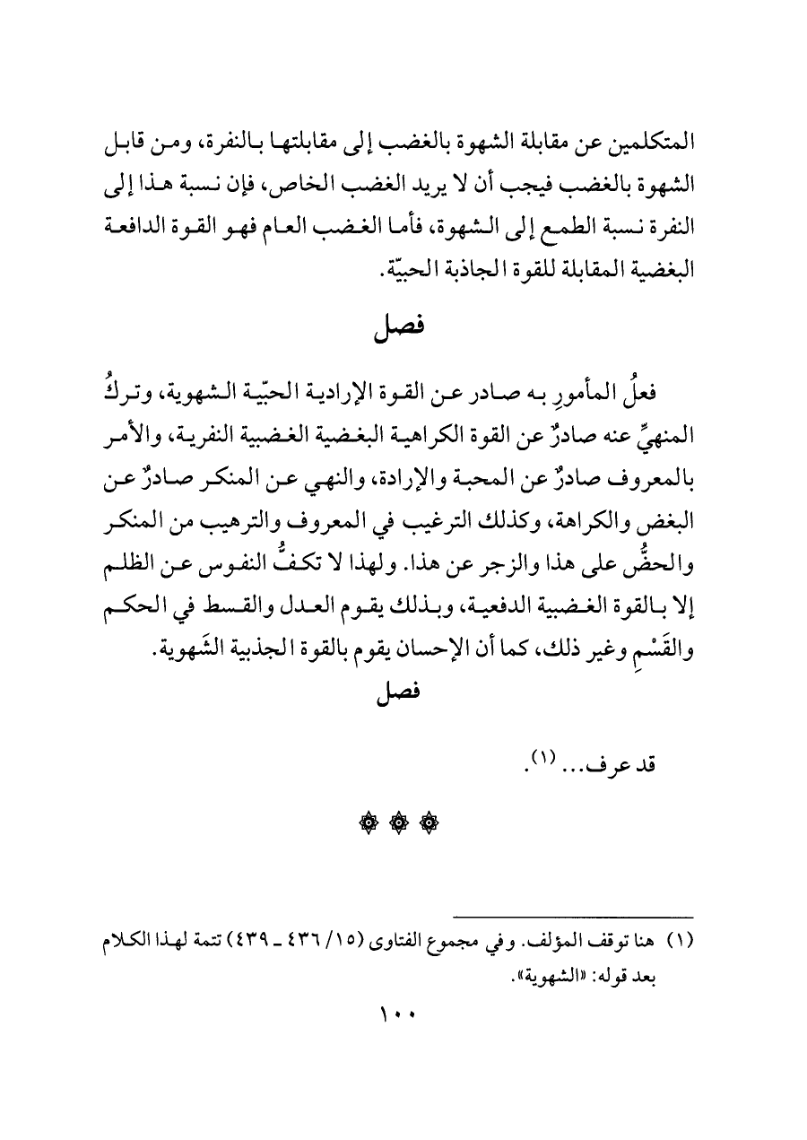 (¬١) هنا توقف المؤلف. وفي مجموع الفتاوى (١٥/ ٤٣٦ ــ ٤٣٩) تتمة لهذا الكلام بعد قوله: «الشهوية».