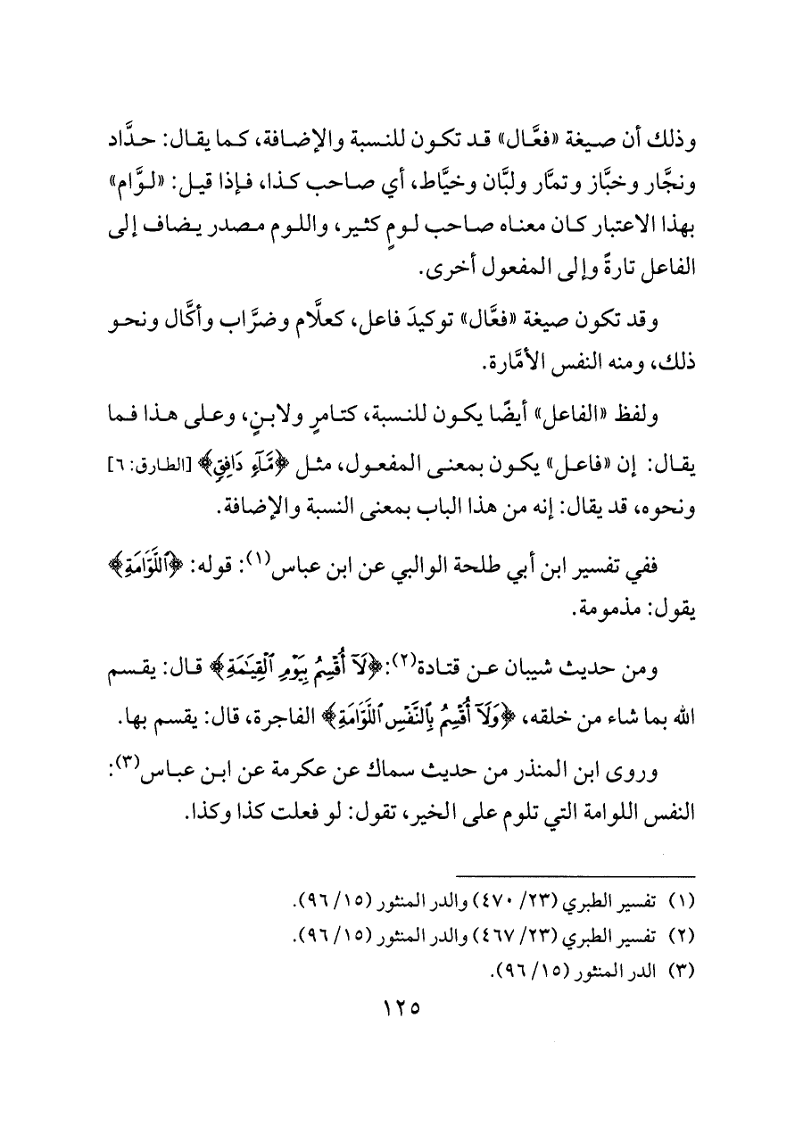 وذلك أن صيغة «فعَّال» قد تكون للنسبة والإضافة، كما يقال: حدَّاد ونجَّار وخبَّاز وتمَّار ولبَّان وخيَّاط، أي صاحب كذا، فإذا قيل: «لوَّام» بهذا الاعتبار كان معناه صاحب لومٍ كثير، واللوم مصدر يضاف إلى الفاعل تارةً وإلى المفعول أخرى.