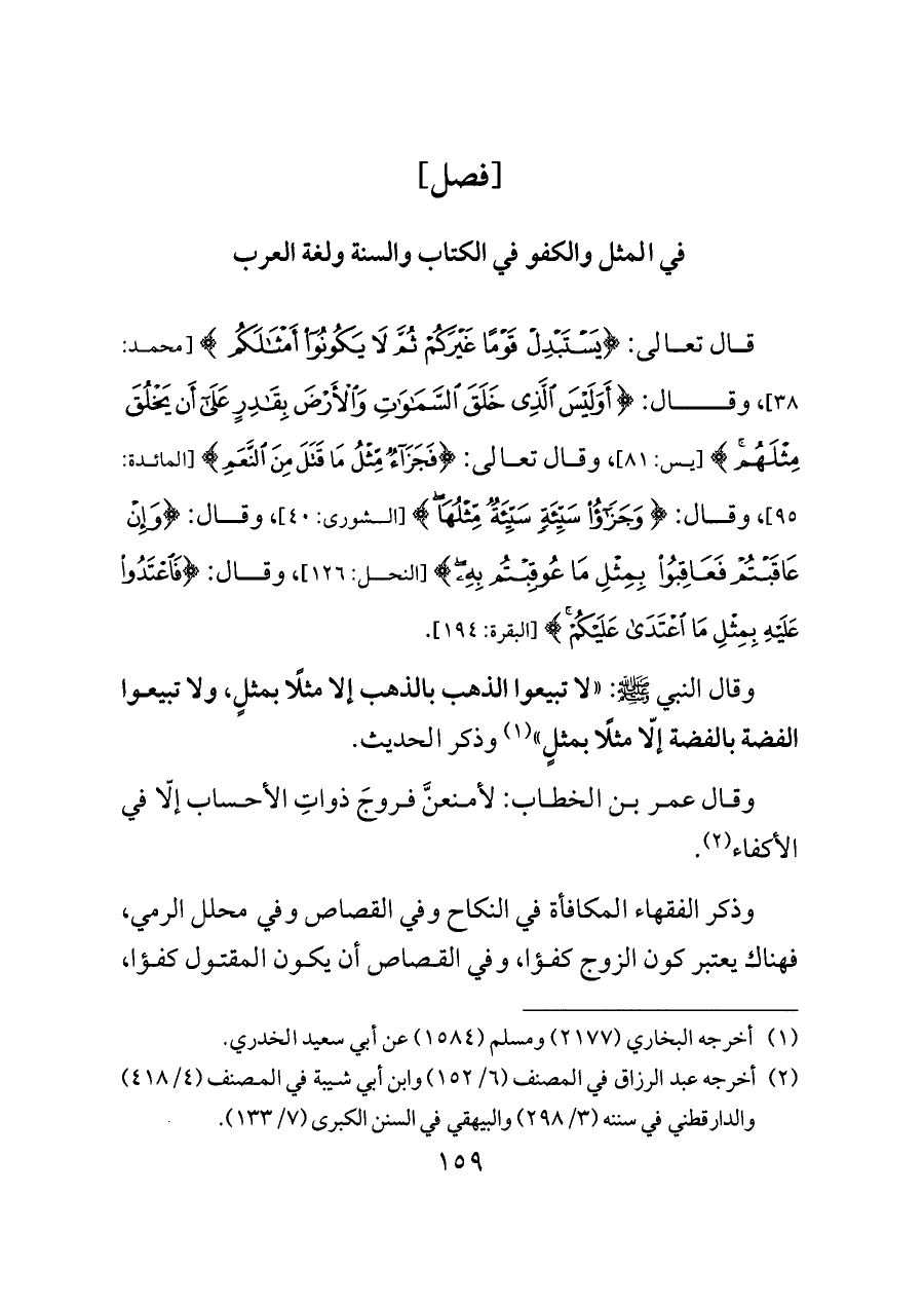 في المثل والكفو في الكتاب والسنة ولغة العرب