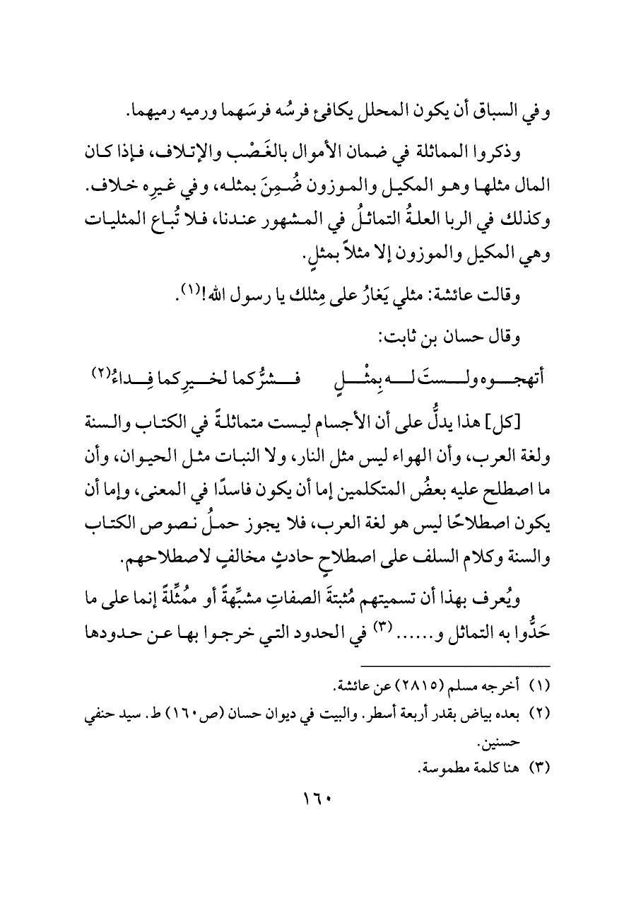 ويُعرف بهذا أن تسميتهم مُثبتةَ الصفاتِ مشبِّهةً أو مُمثِّلةً إنما على ما حَدُّوا به التماثل و ...... (¬٣) في الحدود التي خرجوا بها عن حدودها