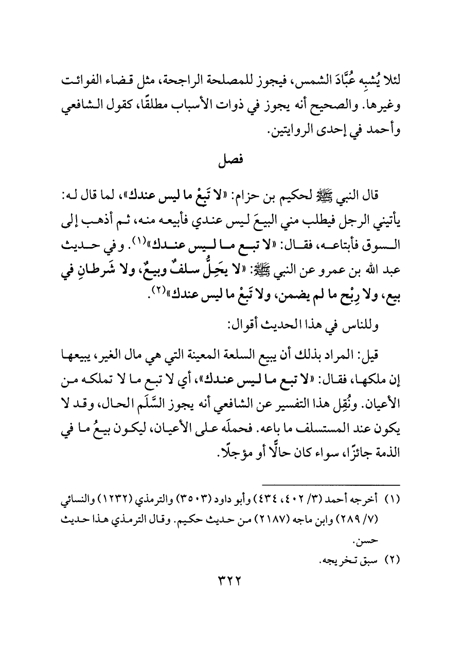 (¬١) أخرجه أحمد (٣/ ٤٠٢، ٤٣٤) وأبو داود (٣٥٠٣) والترمذي (١٢٣٢) والنسائي (٧/ ٢٨٩) وابن ماجه (٢١٨٧) من حديث حكيم. وقال الترمذي هذا حديث حسن.