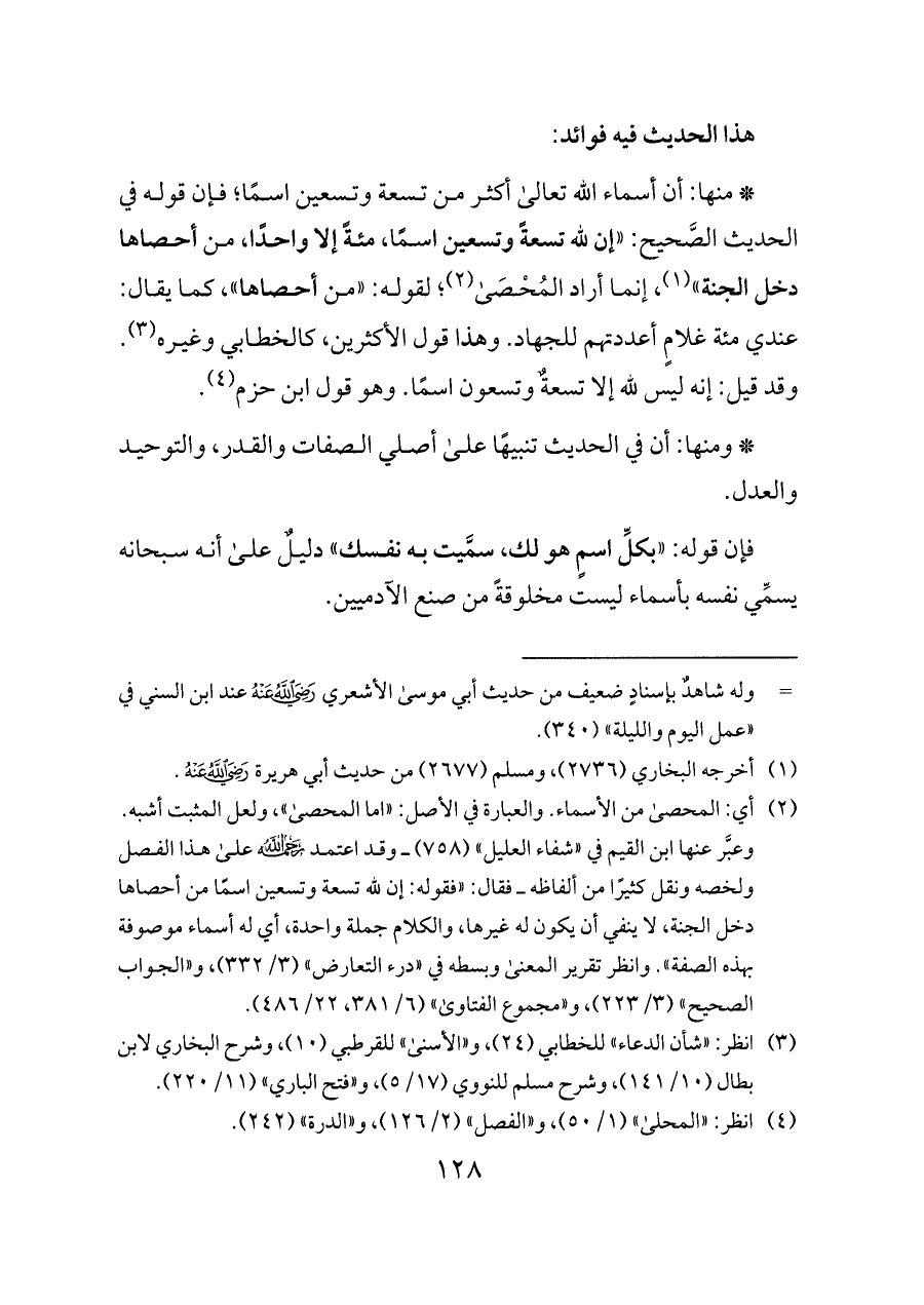 (¬٣) انظر: "شأن الدعاء" للخطابي (٢٤)، و"الأسنى" للقرطبي (١٠)، وشرح البخاري لابن بطال (١٠/ ١٤١)، وشرح مسلم للنووي (١٧/ ٥)، و"فتح الباري" (١١/ ٢٢٠).
