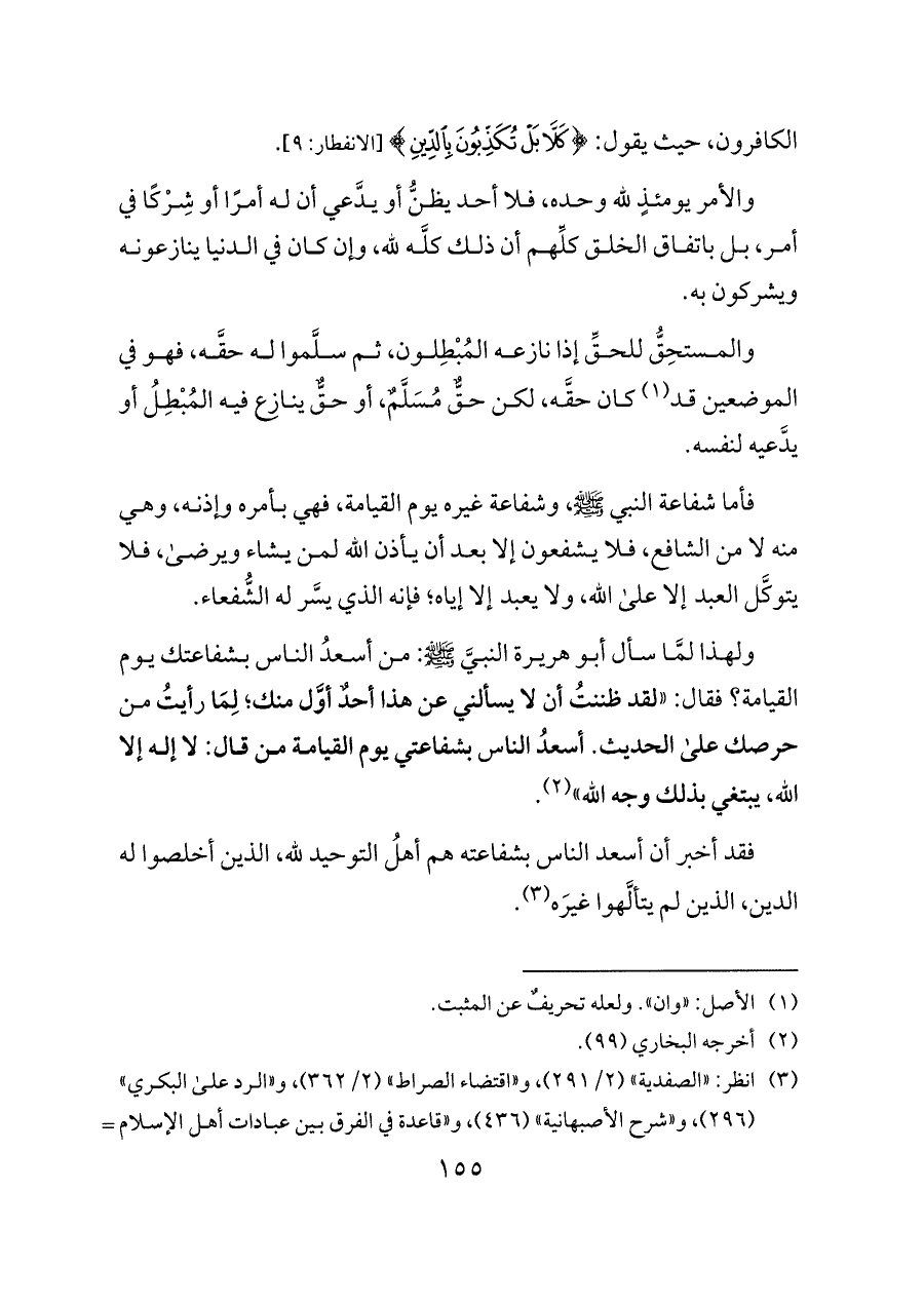 فقد أخبر أن أسعد الناس بشفاعته هم أهلُ التوحيد لله، الذين أخلصوا له الدين، الذين لم يتألَّهوا غيرَه (¬٣).