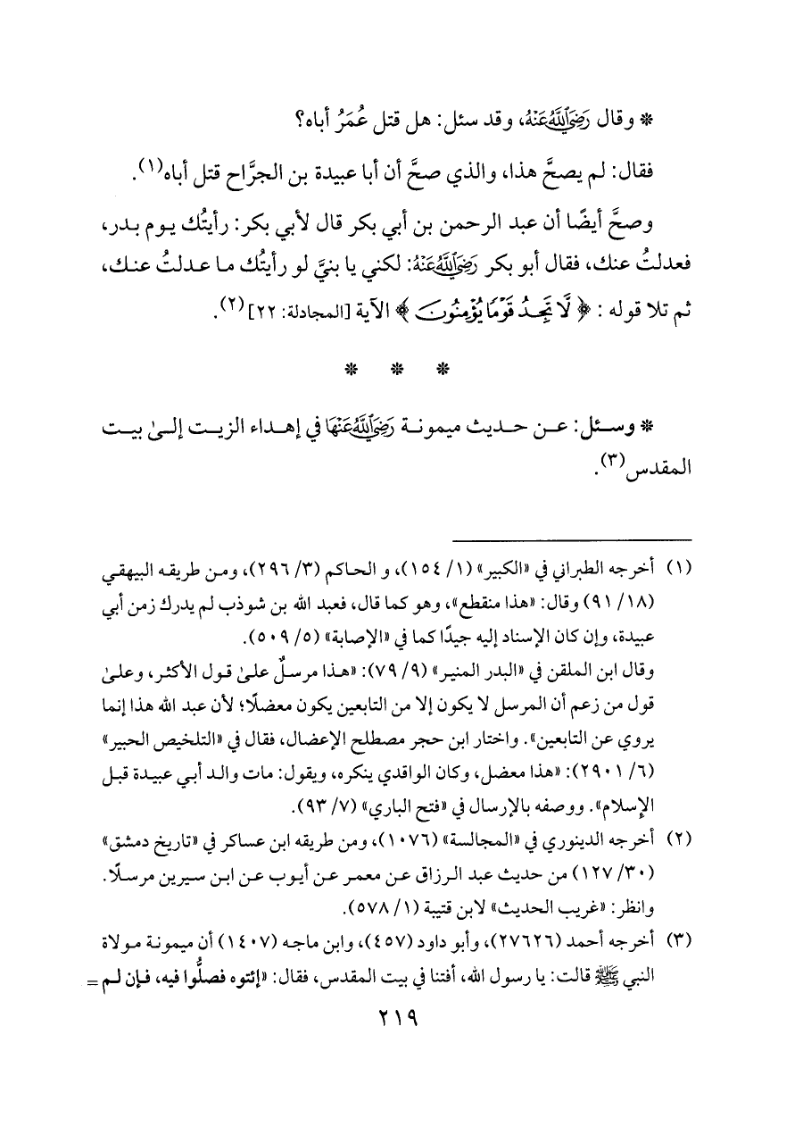 فقال: لم يصحَّ هذا، والذي صحَّ أن أبا عبيدة بن الجرَّاح قتل أباه (¬١).