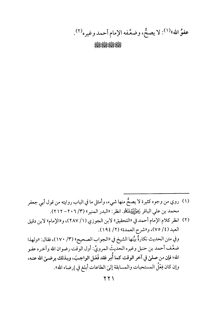 عفوُ الله" (¬١): لا يصحُّ، وضعَّفه الإمام أحمد وغيره (¬٢).
