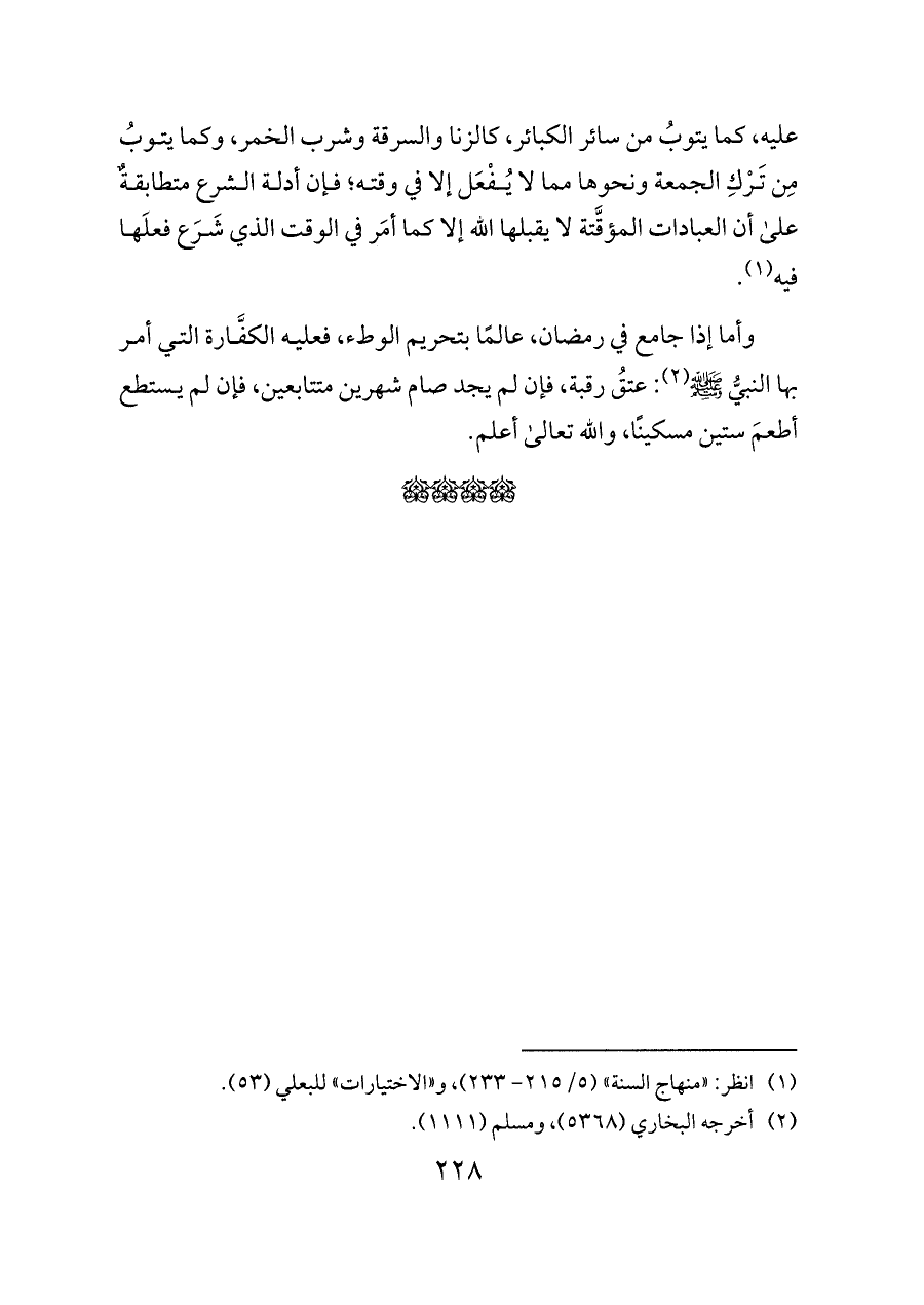 وأما إذا جامع في رمضان، عالمًا بتحريم الوطء، فعليه الكفَّارة التي أمر بها النبيُّ - صلى الله عليه وسلم - (¬٢): عتقُ رقبة، فإن لم يجد صام شهرين متتابعين، فإن لم يستطع أطعمَ ستين مسكينًا، والله تعالى أعلم.