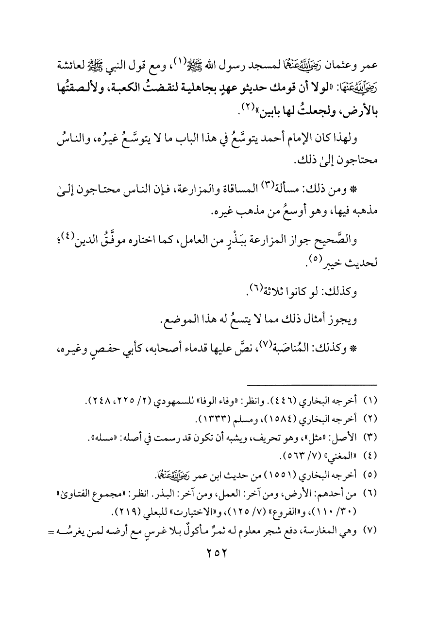 (¬٦) من أحدهم: الأرض، ومن آخر: العمل، ومن آخر: البذر. انظر: "مجموع الفتاوى" (٣٠/ ١١٠)، و"الفروع" (٧/ ١٢٥)، و"الاختيارت" للبعلي (٢١٩).