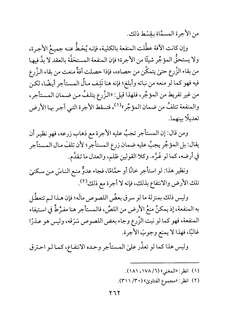 وليس ذلك بمنزلة ما لو سرق بعضُ اللصوص مالَه؛ فإن هذا لم تتعطَّل به المنفعة, إذ يمكنُ منعُ الأرض من اللصِّ، فالمستأجر هنا مفرِّطٌ في استيفاء المنفعة، فهو كما لو نبت الزَّرع وجاء بعض اللصوص سَرَقه، وليس هو عذرًا غالبًا، فهذا لا يمنع وجوبَ الأجرة.
