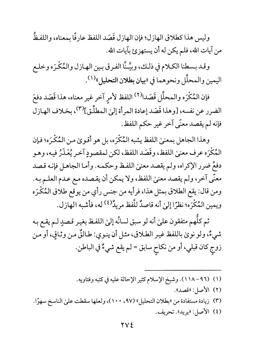 وقد بسطنا الكلام في ذلك، وبيَّنَّا الفرق بين الهازل والمُكْرَه وخلع اليمين والمحلِّل ونحوهما في "بيان بطلان التحليل" (¬١).