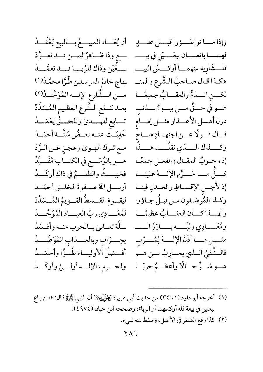 هكذا قال صاحبُ الشَّرع والمنـ ... ـهاج خاتمُ المرسلين طُرًّا محمَّدْ (¬١) ... لكنِ الذمُّ والعقابُ جميعًا ... من الشَّارع الإله المُوَحَّدْ (¬٢)