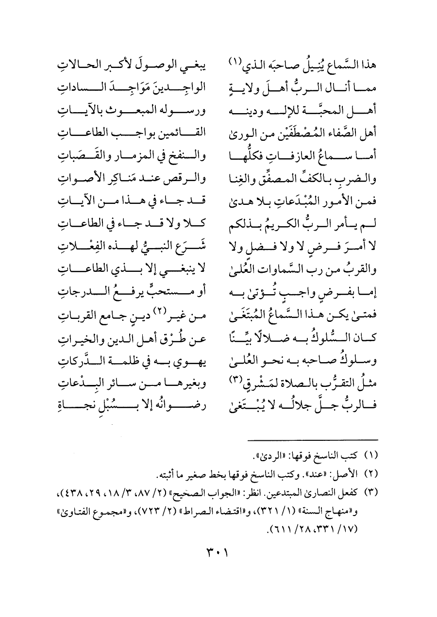 هذا السَّماع يُنِيلُ صاحبَه الذي (¬١) ... يبغي الوصولَ لأكبر الحالاتِ