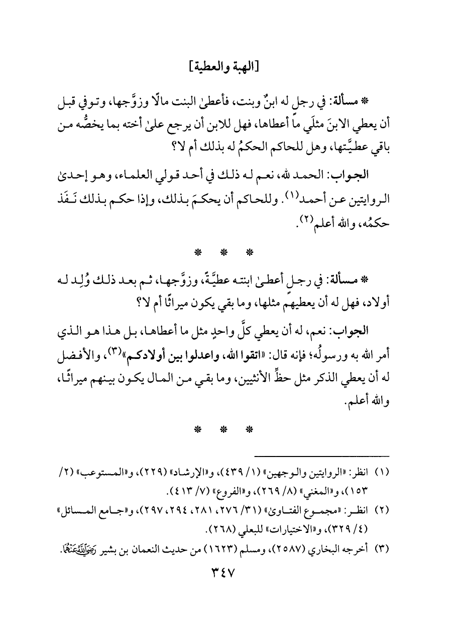 (¬٣) أخرجه البخاري (٢٥٨٧)، ومسلم (١٦٢٣) من حديث النعمان بن بشير - رضي الله عنهما -.