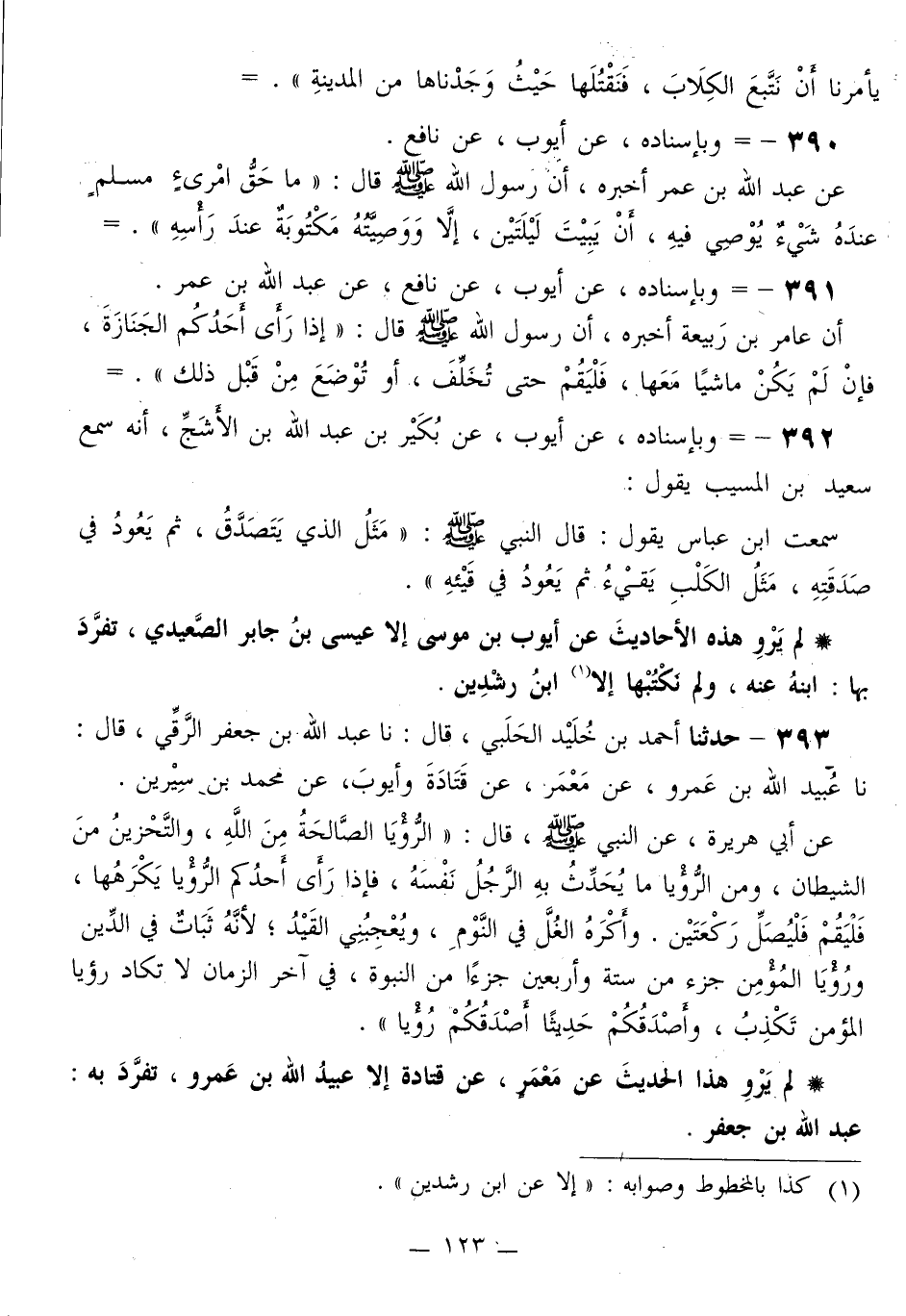 لَمْ يَرْوِ هَذِهِ الْأَحَادِيثَ عَنْ أَيُّوبَ بْنِ مُوسَى إِلَّا عِيسَى بْنُ جَابِرٍ الصَّعيدِيُّ، تَفَرَّدَ بِهَا: ابْنُهُ عَنْهُ، وَلَمْ نَكْتُبُهَا إِلَّا عنِ ابْنِ رِشْدِينَ